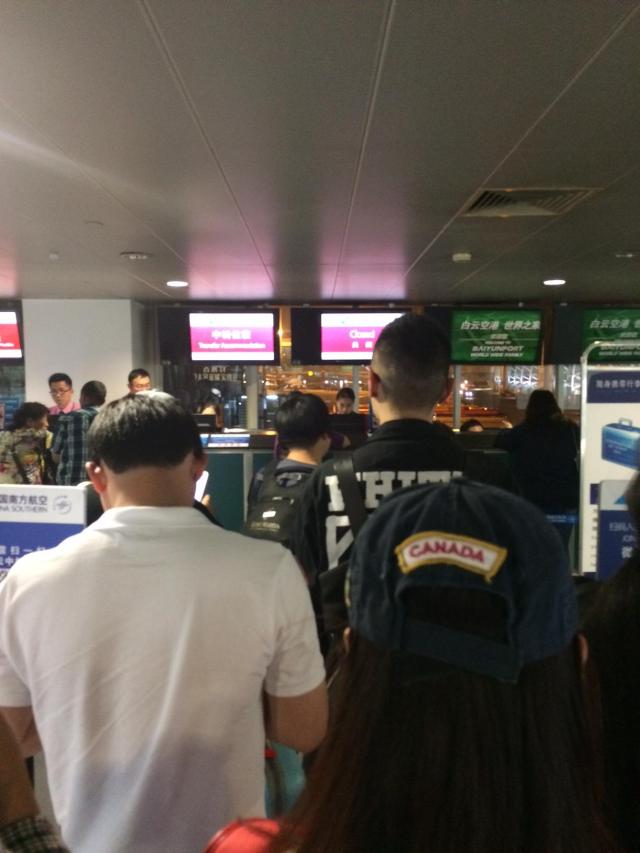 Our flights were delayed in Shanghai so approx 4 hours late. Nic managed to get her flight to Hong Kong so she’s all sorted! But I have arrived very late in Guangzhou… and have missed my connecting flight to Bali. Just in a queue…