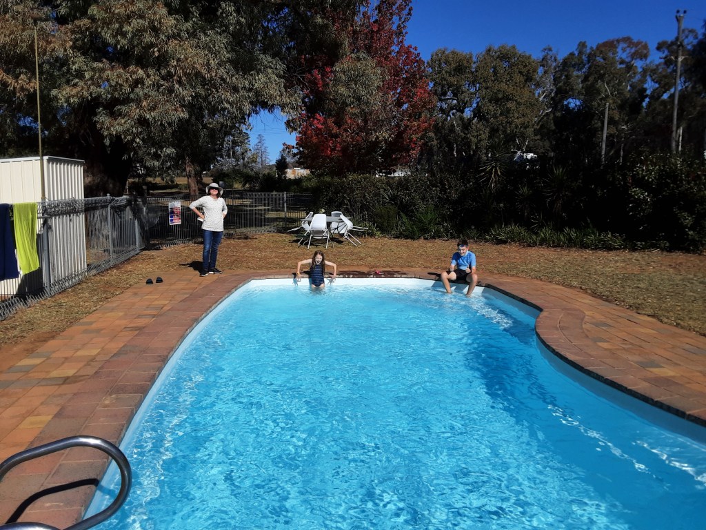 As we arrived in Coonabarabran me and Jimi got ready for the pool I saw on the way in. As we came to the pool I didn’t really thin about how cold or hot πππ the pool might be… and well.. I guess you know what happens next… I walked down the step so fast I fell in the pool and it was like freezer water defrosted…π₯Άπ₯Άπ₯Άπ₯Άπ₯Άπ₯Άπ₯Άπ°π°π° I was so cold but I ddidn’t even care about it really so I just stayed in, but eventually I froze so I got out, now you know why that was the Title of the post…..